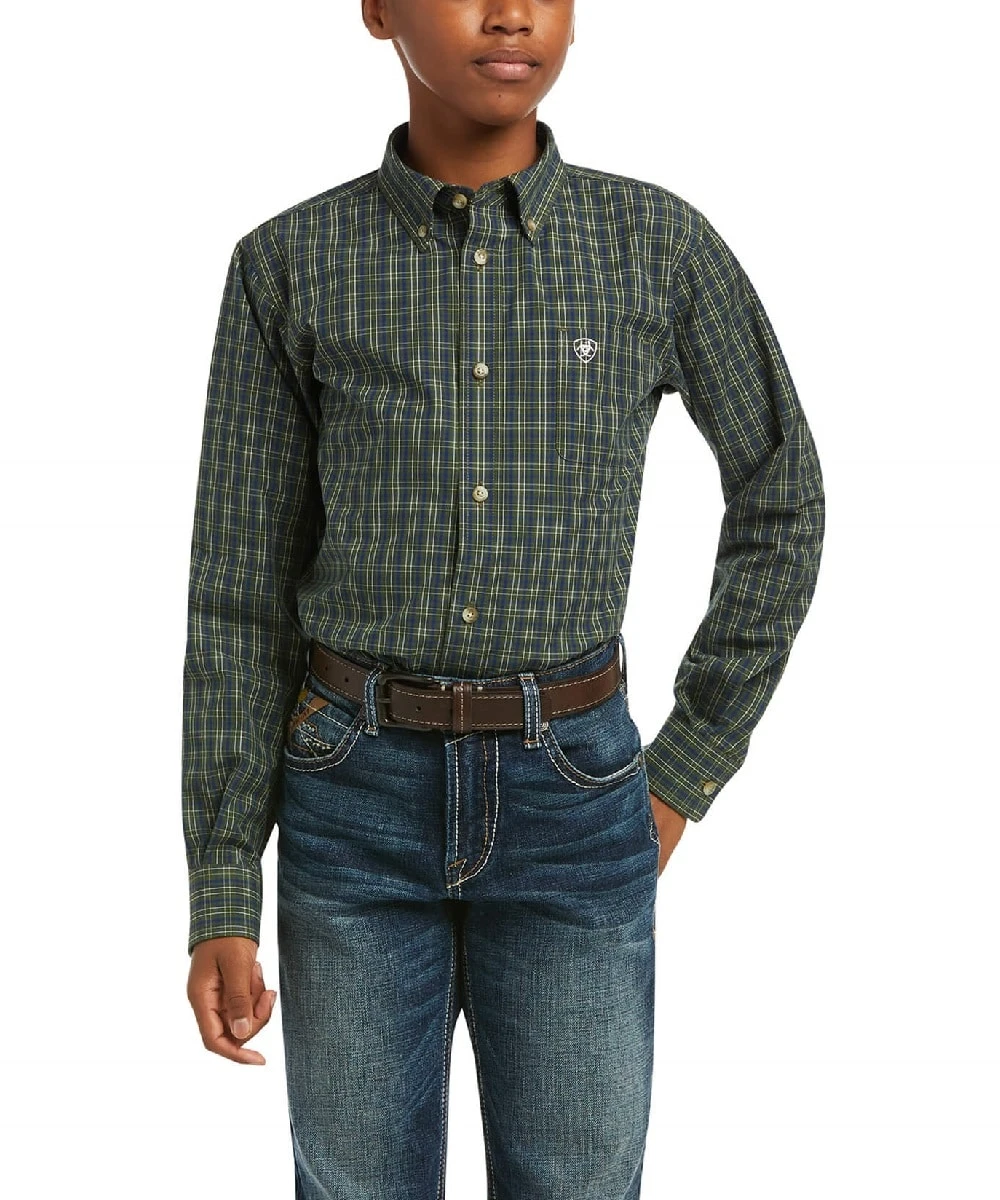 85% Cotton/15% Polyester; Button Down Collar; Button Cuffs; Single Open Pocket With Embroidered Ariat Logo; Straight Back Yoke With Box Pleat And Ariat Embroidery; Breathable Mesh Yoke; Underarm Gusset; Taped Placket And Back Neck Seam; Color: Hemlock Plaid; Greater Arm Mobility For Maximum Range Of Motion; Sun Protection Fabric; Moisture Movement Technology Wicks Away Moisture From Skin; Classic Fit With Extra Length For Tucking; Style #10038072