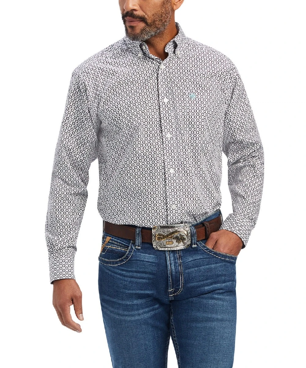 100% Cotton; Printed Poplin; Button Down Collar; White Buttons; Button Front And Cuffs; Single Open Chest Pocket With Logo Embroidery; Greater Arm Mobility For Freedom Of Movement; Woven Placket Label; Color: White; Style #10041742