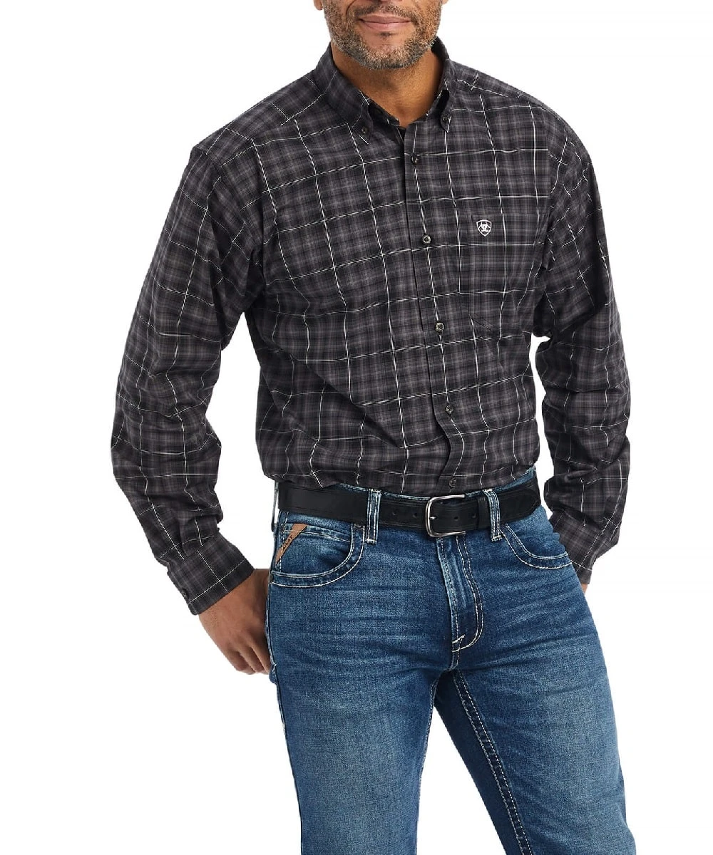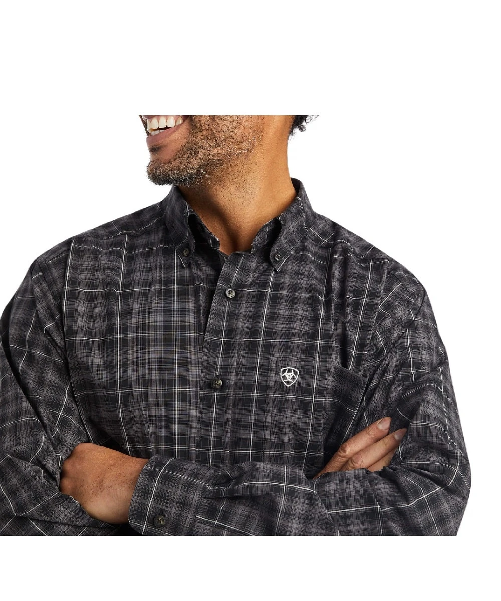 85% Cotton/13% Recycled Polyester/2% Spandex; Long Sleeve; Greater Arm Mobility For Freedom Of Movement; Button Down Collar; Taped Placket And Back Neck Seam; Button Down Placket; Open Left Chest Pocket With Logo Embroidery; Breathable Mesh Back Yoke; Button Cuffs; Performance Stretch Fabrication; Color: Black Plaid; Style #10042267