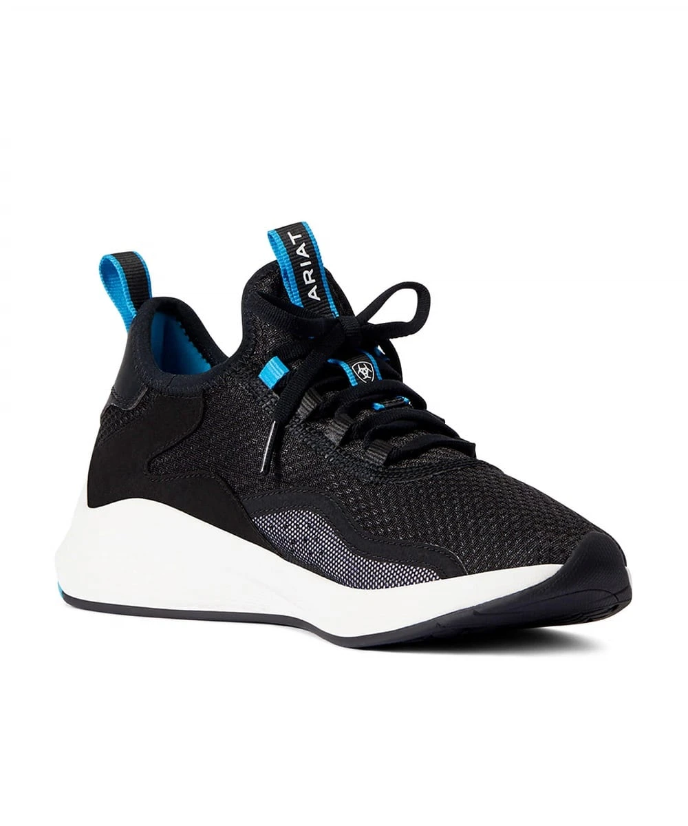 100% Textile; Mesh Upper; Laminated HDry Waterproof Construction; Extreme Comfort Insole With Added Cushion And Rebound; FLX Foam Midsole For Lightweight Cushion And Rebound; Front Lace System; Rubber Sole; Turquoise Accents; Round Toe; 3.5″ Height; Color: Black; Style #10038440