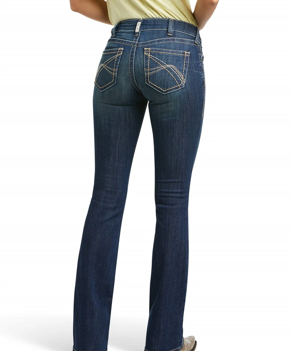 93% Cotton/5% Polyester/2% Spandex, 9.75 Oz. Performance Stretch Denim; Mid Rise; Slim Fitting Through Thigh; Dark Wash; Seat That Won’t Sag; Waist Band That Wont Gap; Fashion Back Pocket; Five Pocket Styling; Whiskers; Hand Sanding; Boot Cut; Style #10039610