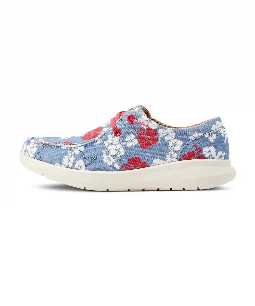 Fabric Upper; Open Cell Cushioning Insole; Fabric Lining; Flexible Lightweight FLX Foam Sole; Moc Toe; Color: Red, White And Blue Floral Print; Style #10044522