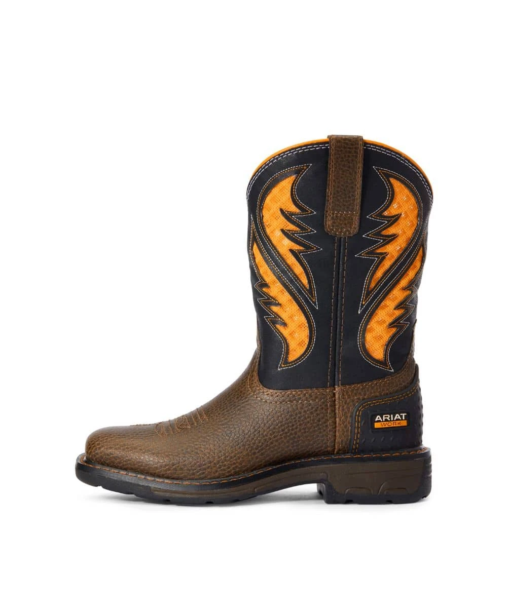 8″ Shaft; Color: Cocoa Brown/Orange; Faux Leather Foot And Upper; VentTEK Mesh Panels Enable Air Flow To Keep You Cool And Comfortable; Removable Ariat Wiggle Room Insole Creates Up To An Additional Half Size For Growing Feet; 4 Layer Rebound Technology For Support And Cushioning; Wide Square Toe; Style #10034159