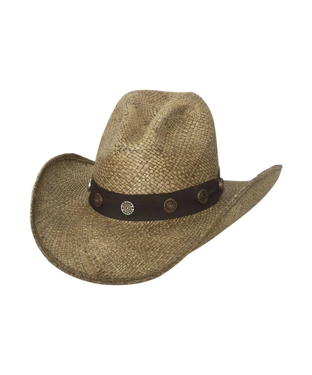 Genuine Panama Straw; Color: Natural; 4″ Brim; Brown Ribbon Hatband With 12 Gauge Pieces; Style #2959