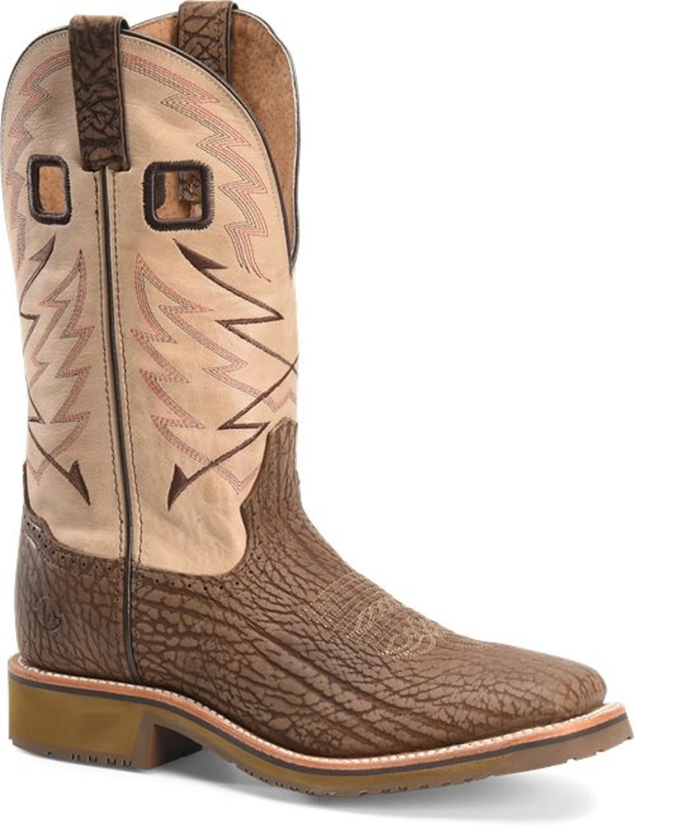 12″ Boot; Dodge City Bullhide Leather Vamp; Distressed Cream Leather Quarter; Leather Lining; Full Vamp; Texon Board Footbed; Double Tuff PU Insert; Leather Goodyear Welt Construction; Non Metallic Shank; 1 1/2″ Heel; Wide Square Toe; Aeroglide Unit Bottom; Style #DH7013