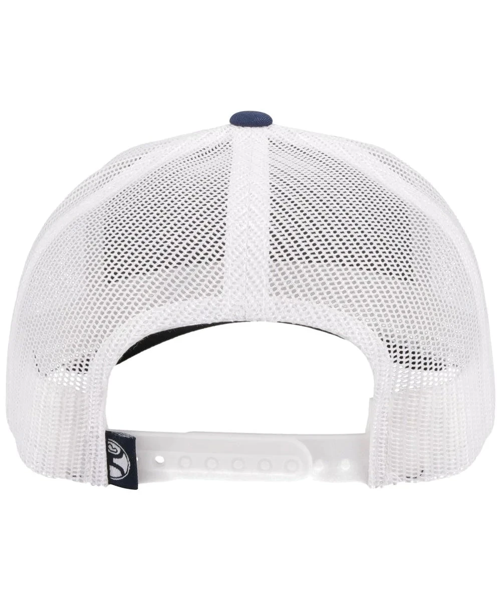 5 Panel Construction; Trucker Style; Navy Front And Bill; White Logo; Curved Bill; Mid-Profile Crown; White Mesh Back; Snapback Closure; Style #2117T-NVWH