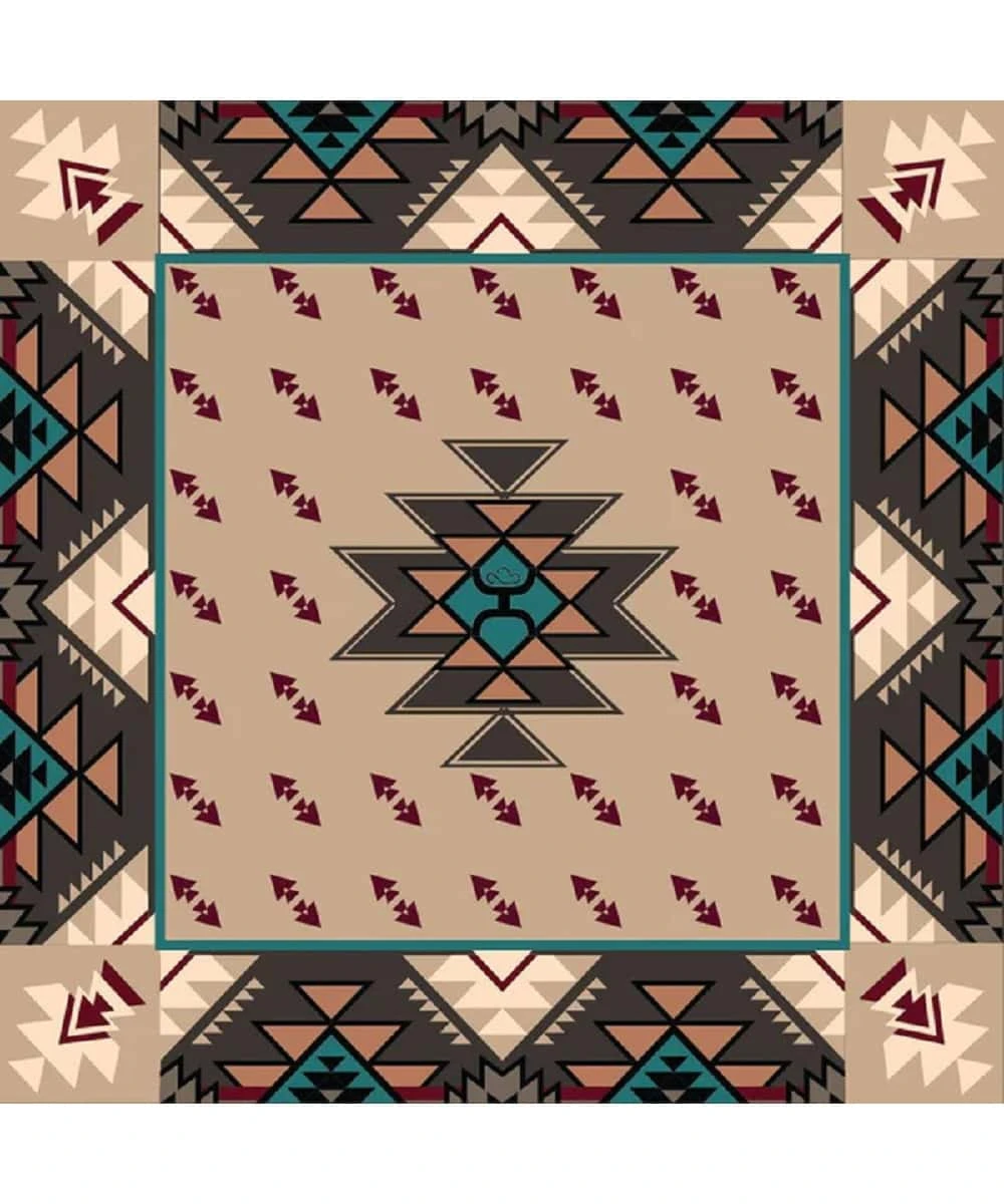 Measures Approximately: 25″ X 25″; Brown, Cream And Turquoise Monterey Print Design; Style #BANDANA22- MONTEREY-1