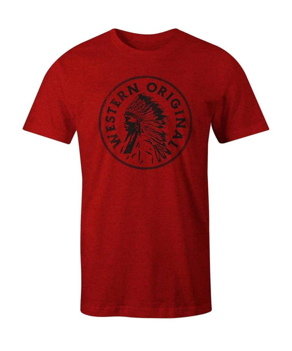 50% Cotton/50% Polyester; Color: Red; Short Sleeve; Black Graphic Print Of Quanah With Wording âWestern Originalâ; Athletic Fit; Soft Feel; Style #HT1517RD