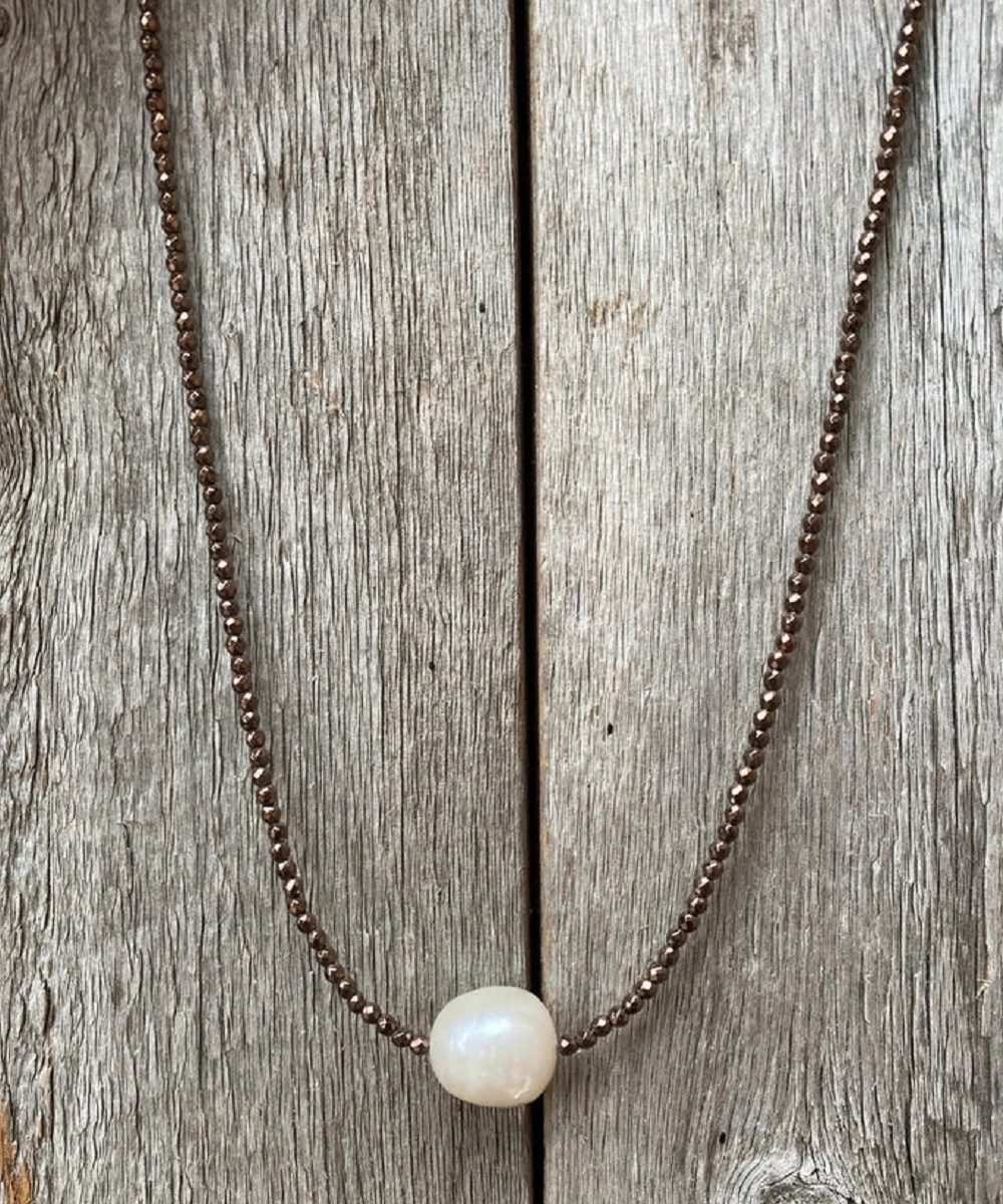 Small Bronze Faceted Hematite; Freshwater Pearl Center; Style #16085