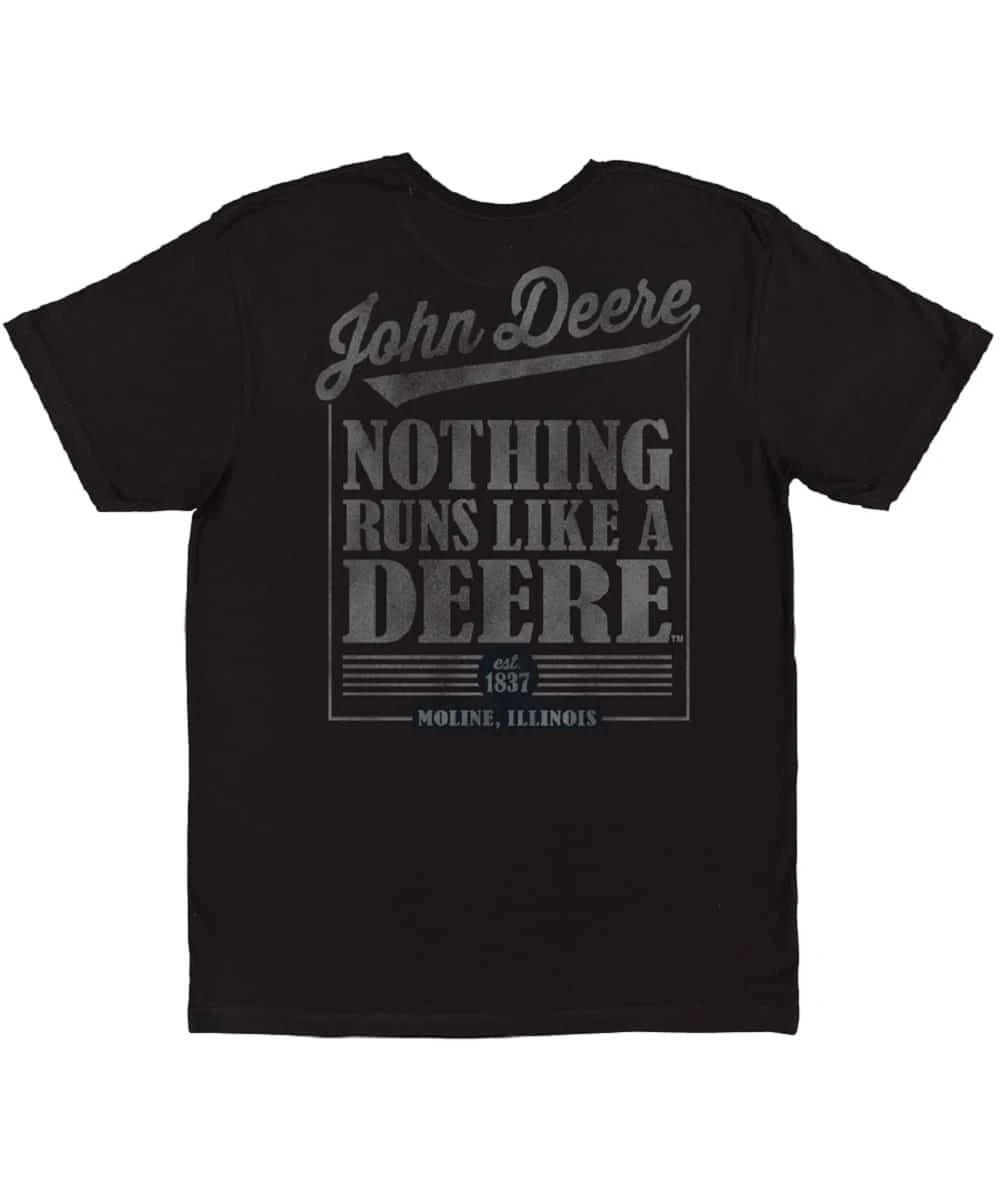 60% Cotton/40% Polyester; Crew Neck; Short Sleeve; Back Gray Graphic Tee Print Reads: John Deere, Nothing Runs Like A Deere; Front Gray John Deere Logo Print; Style #13002189