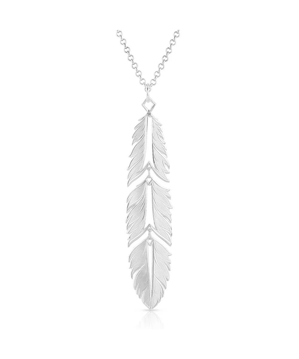 99.99% Fine Silver Over Brass Base; Feather Shaped Pendant; Feather Is Split Into Three Different Sections Offering Movement In The Design; Open Cut Vein Of Feather Provides Delicacy; 19″ Silver Tone Chain; Montana Armor To Prevent Tarnish; Style #AMNC5459