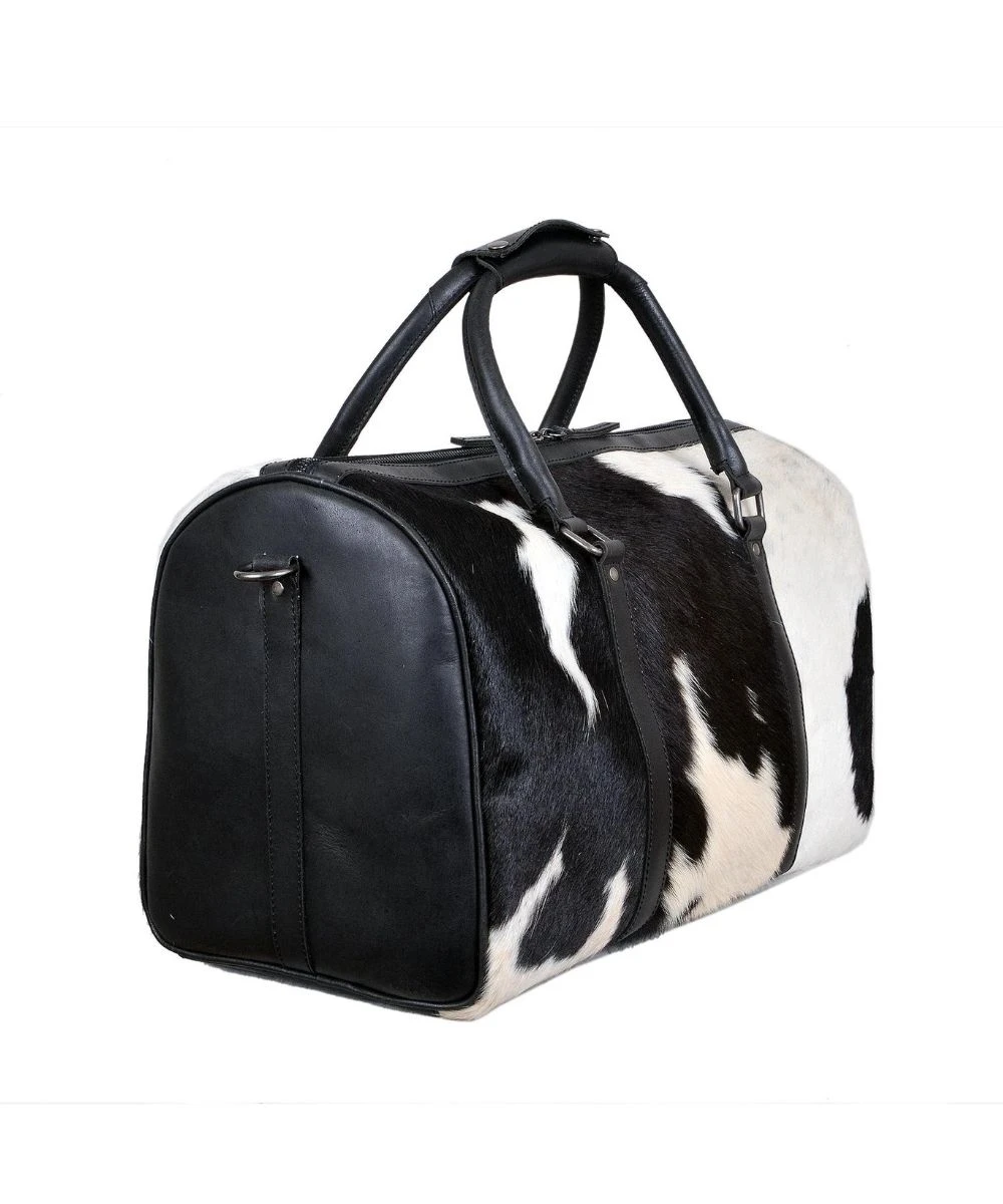 Overnight Duffel Bag; Black Hair On Hide And Dakota Leather; Zipper Closure; Style #BL2900BW