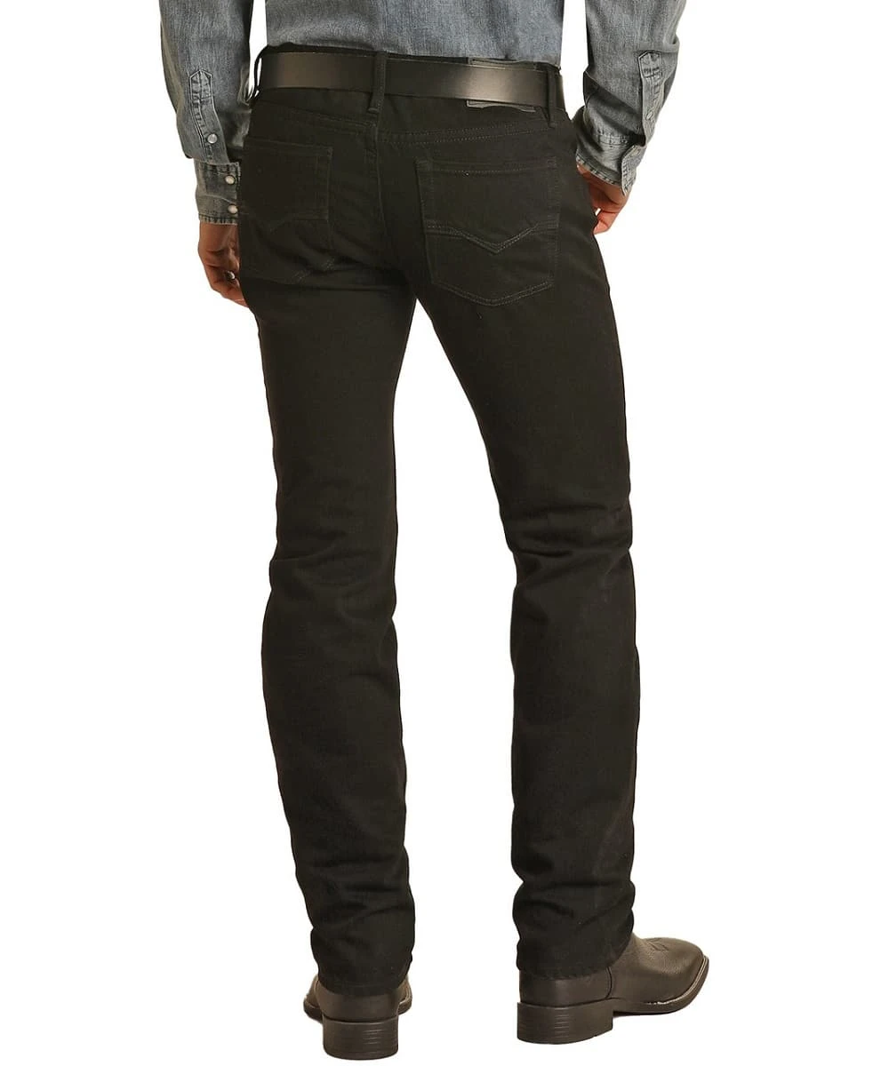 100% Cotton; Slim Fit; ReFlex Technology; Five Pocket Styling; Embroidered Back Pocket Designs; Color: Black; Straight Leg; Style #RRMD1RR0N5