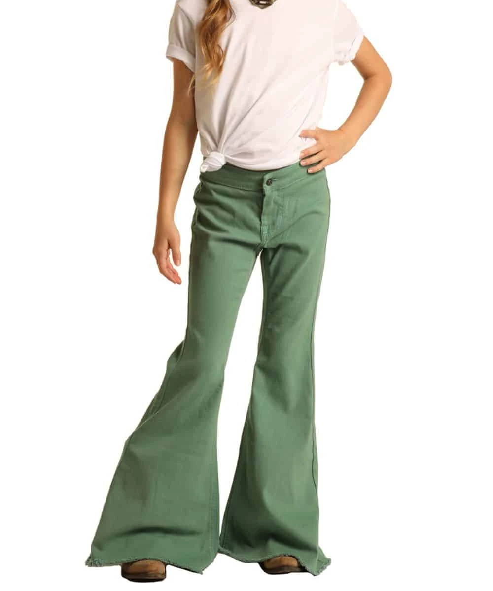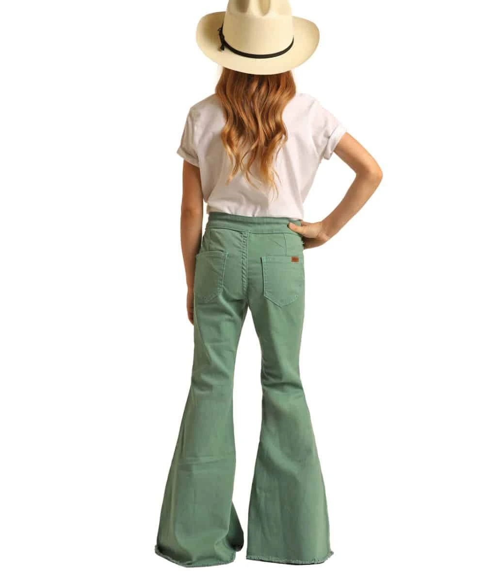 97% Cotton/3% Elastane; Zip Fly With Button Closure; Two Back Pockets; Seam Design Above Back Pockets; Distressed Hem; Flare Leg; Jade Denim; Style #G5B3512