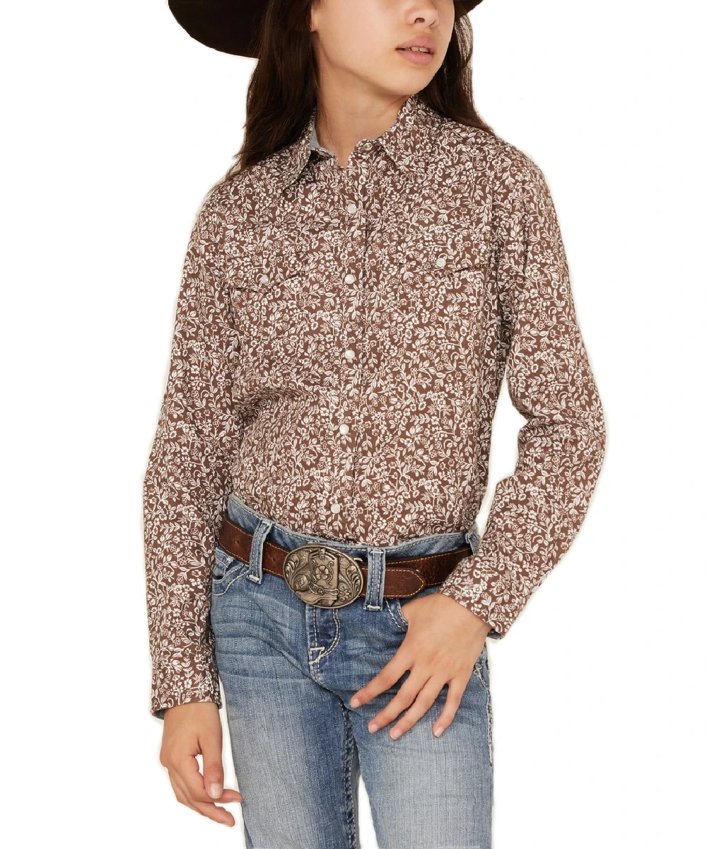 100% Cotton; Long Sleeve; Spread Collar; Snap Front And Cuffs; Snap Flap Chest Pockets; Pearl Snaps; Single Point Front Yoke; Two Point Back Yoke; White Frontier Floral Print; Chambray Inside Trim; Colors: Brown And White; Style #03-080-0064-4044
