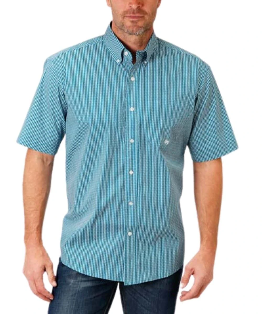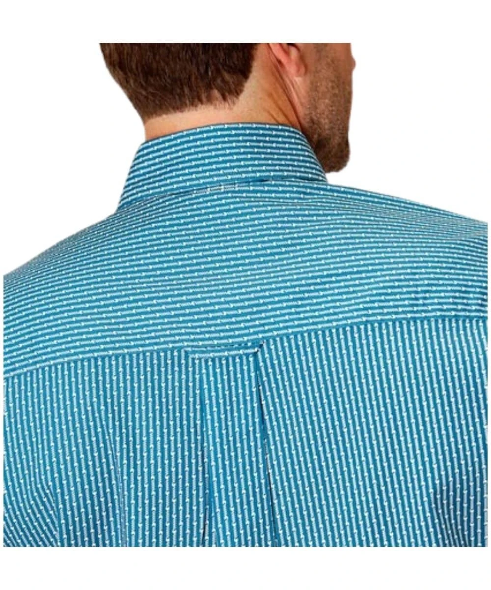 97% Cotton/3% Spandex; Short Sleeve; Button Down Collar And Placket; Single Open Chest Pocket With Logo Embroidery; Straight Back Yoke With Pleat And Locker Loop; Color: Teal With Green Arrow Print; Style #03-002-0326-2103