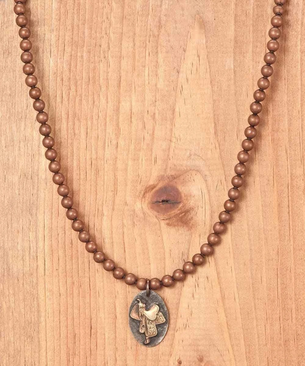 Burnished Copper Single Strand With Small Oval 2 Tone Saddle Charm; Style #N1080SDL