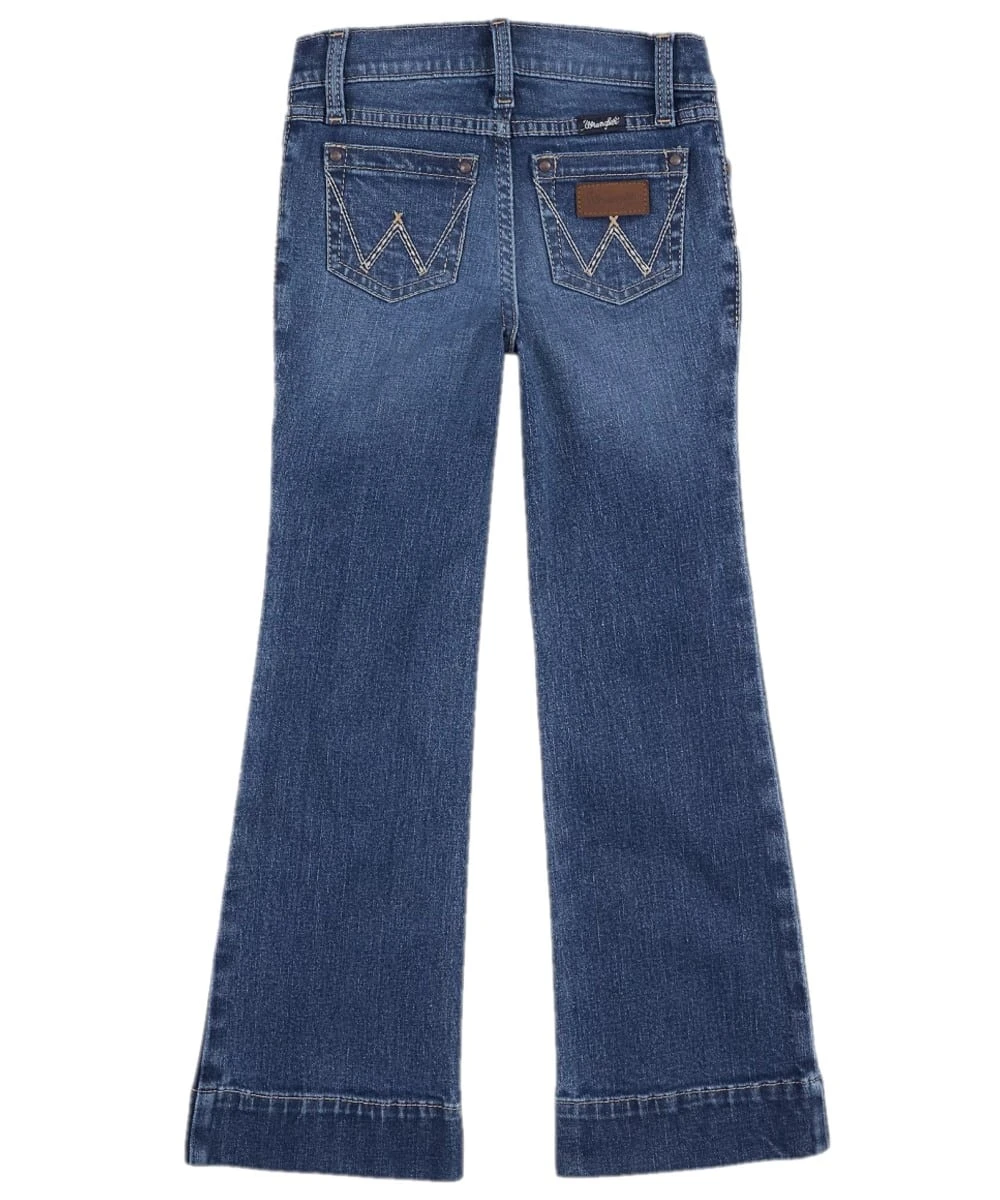 98% Cotton/2% Spandex; 10.5 Oz. Denim; Regular Fit; Dark Wash; Adjustable Waist; Zip Fly With Button Closure; Whiskering And Fading; Classic Five Pocket Styling; Leather Logo Patch On Back Pocket; W Embroidery On Two Back Pockets; Wide Leg Trouser Jean; Color: Daisey; Style #112317227