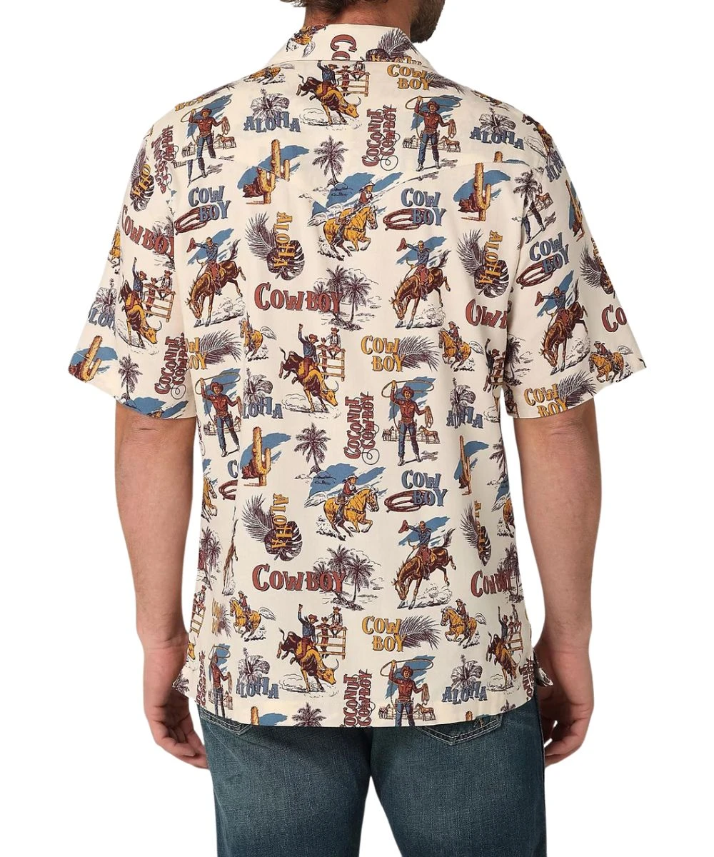 55% Cotton/45% Rayon; Classic Fit; Short Sleeve; Snap Front Placket; Two Single Point Snap Flap Chest Pockets; Single Point Back Yoke; Color: Multi Color Cowboy Print; Style #112324942